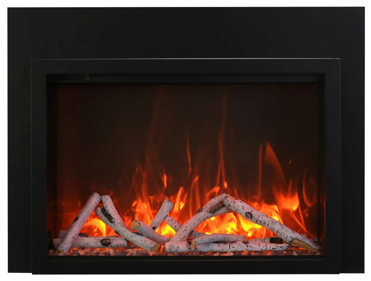 The Amantii Traditional Built-In Electric Fireplace series offers a beautiful and classic look for those wishing to add a fireplace to their home. This 30" electric fireplace is guaranteed to create a stylish and inviting centerpiece, to help showcase your room. With beautiful LED lit flame effects, this traditional firebox creates the appearance of a real burning fire using customizable combinations of orange, yellow and red lighting strips. Additional lighting customization come from the integrated canopy lighting, that cascades tranquil colors (11 options) down and over the unit's included ember bed. To help create that sought after, "finished" look, consider adding a decorative trim surround. Please note, if you plan on semi-flush mounting your fireplace a trim surround is required.